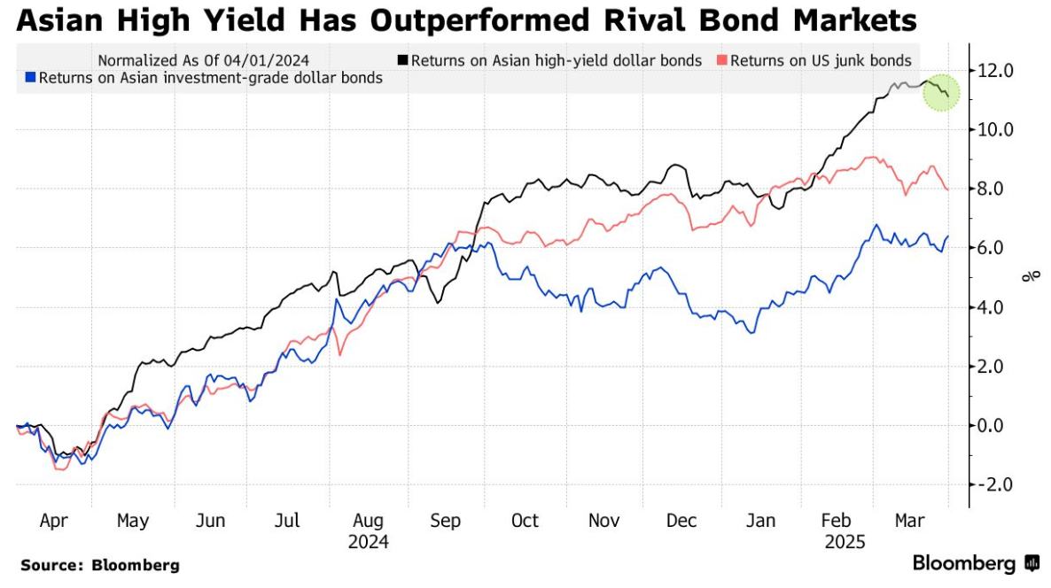 瑞银资产管理亚洲固定收益投资主管Raymond Gui指出,亚洲高收益债券发行人基本不受冲击全球市场的关税担忧影响,但仍预期加征关税会打压市场情绪,为投资者抛售风险资产时创造盈利机会。